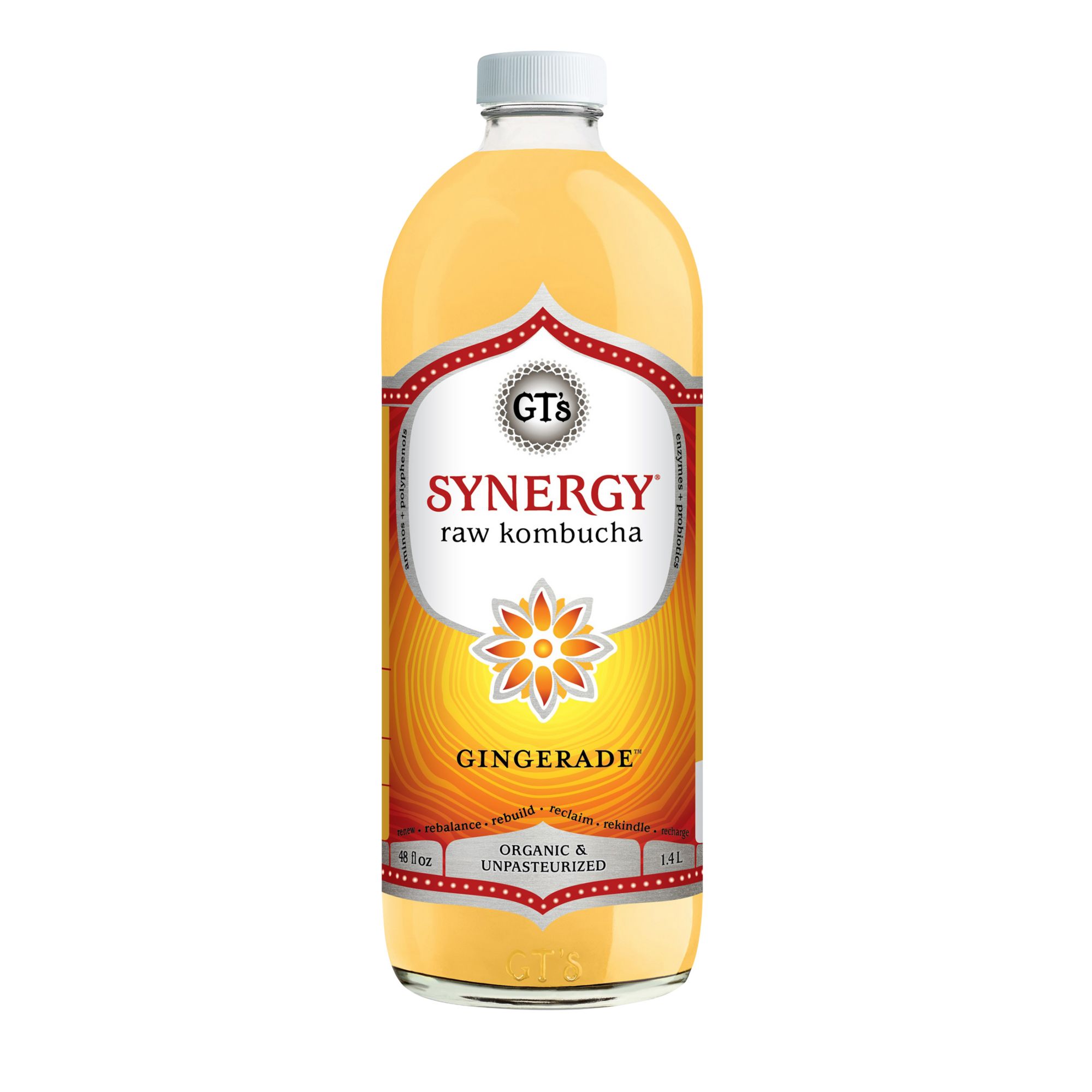 SYNERGY Raw Kombucha | GT's Living Foods Fully fermented for 30 days in small batches, this probiotic powerhouse is potent with organic acids, active enzymes, and aminos to support the gut, aid digestion, and boost immune health. Perfect for new and experienced Kombucha drinkers alike, every bottle is 100% organic with elegant natural effervescence and a bright crisp bite.