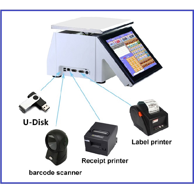 30Kg Barcode Timbangan dengan Printer Label 6000 PLUs Kapasitas Penyimpanan Data dan 400 Gambar Kapasitas Penyimpanan