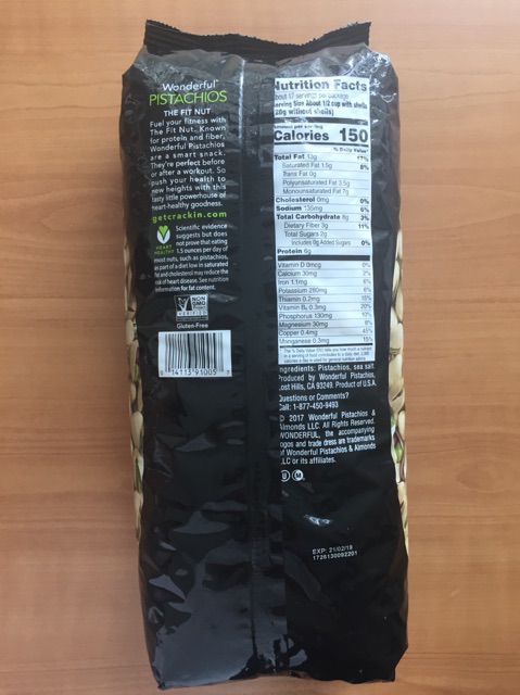 Wonderful, Pistachios, Salt & Pepper Nutrition Facts - Eat This Much Wonderful, Pistachios, Salt & Pepper Paramount Farms Find on Amazon Percent calories from... Quick stats 159.9 Calories 8g Carbs (5g net carbs) 14g Fat 6g Protein No price info Try our free Diet Generator I want to eat calories in meals. I like to eat No Salt Pistachios, 16 oz at Whole Foods Market Nutrition Facts Ingredients: Pistachios. Allergens Tree Nuts Dairy-Free Kosher* Low-Sodium** Paleo-Friendly Sugar-Conscious Vegan Vegetarian Whole Foods Diet Keto-Friendly * Certified Kosher by OU ** See nutrition information for Total Fat content You may also like Wonderful Pistachios Lightly Salted Pistachios, 16 oz Add to list