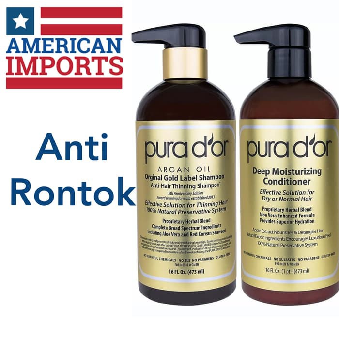 PURA D'OR Shampo Terapi Pengencer Rambut & Kondisioner 2 -Piece System for Prevention, Diserang dengan Minyak Argan Organik Premium, Biotin & Bahan ...