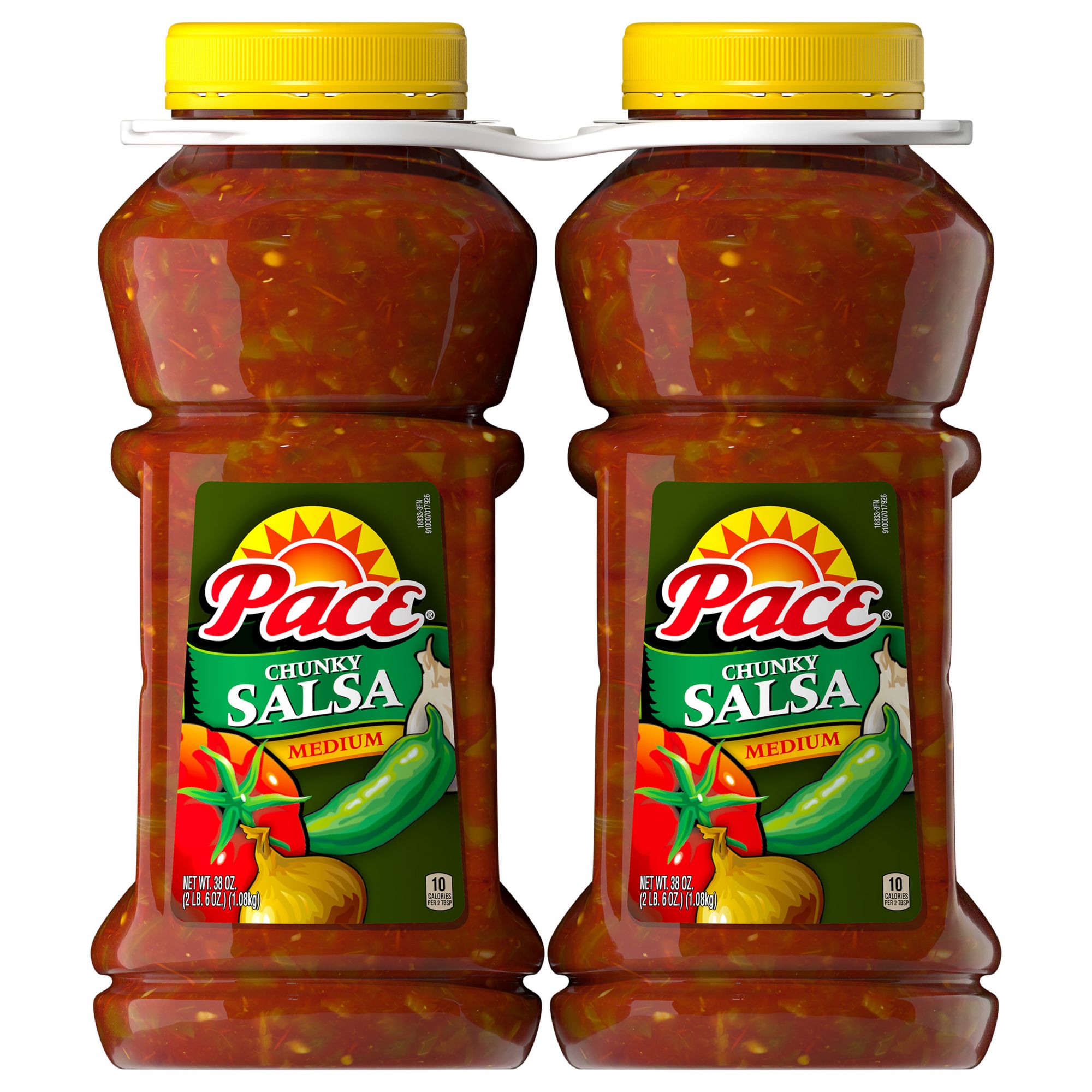 Pace Chunky Salsa, Medium (38 oz., 2 ct.) - Sam's Club 38 oz. easy-to-pour plastic bottle, 10 calories per serving, about 38 servings per bottle; Add on top of any dish with easy-to-pour jar, perfect for Taco Night! ... When it comes to Pace® salsa, jalapeños are king. In our Pace Thick & Chunky Medium Salsa, tomatoes, hand-picked jalapeno peppers and onions come together to pack bold Southwest ...