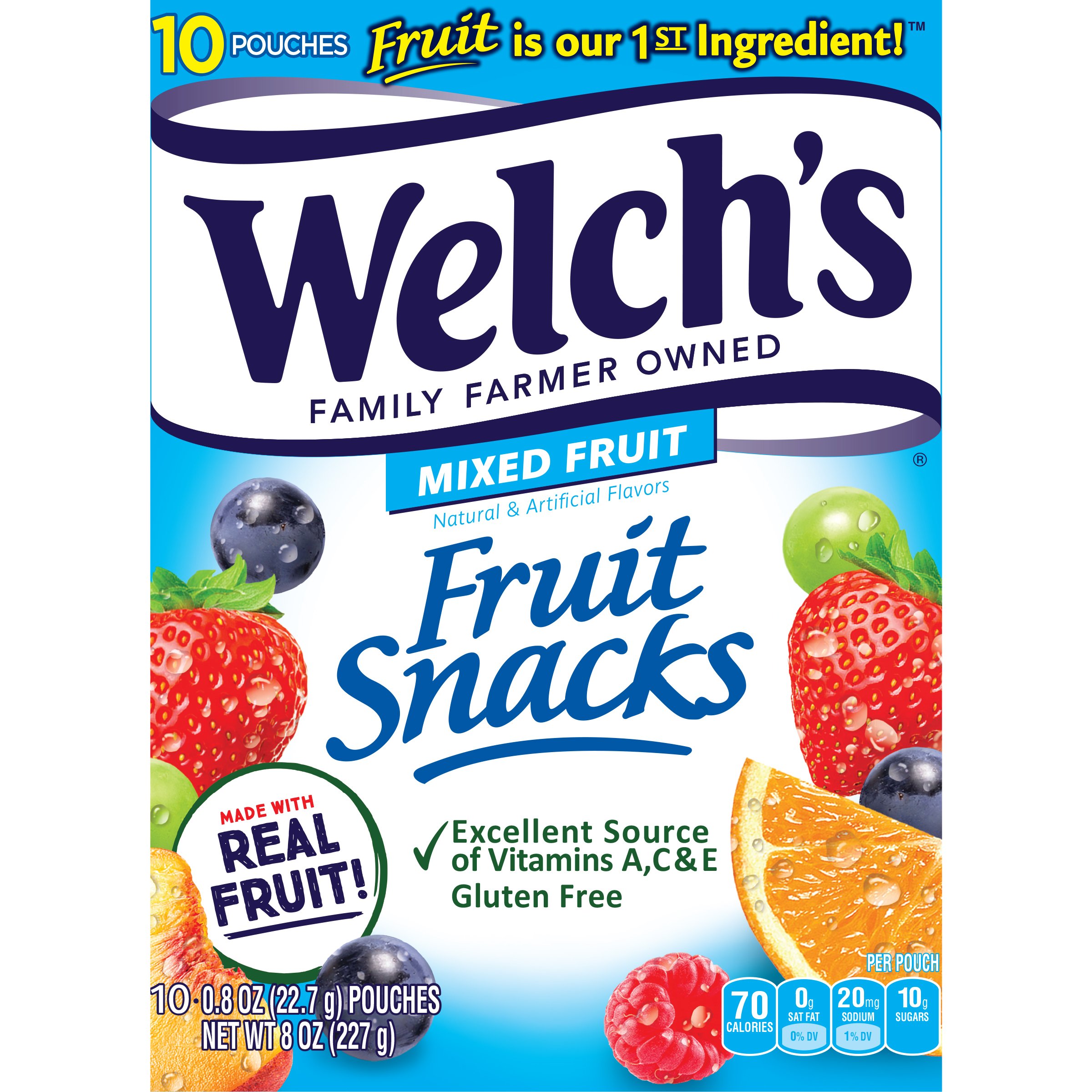 Nutrition Facts for Welch's Mixed Fruit Snacks • MyFoodDiary® Good source of vitamin C and vitamin A. View calories, net carbs, added sugars, sodium, protein, total carbohydrates, fats, vitamins, minerals, and more!