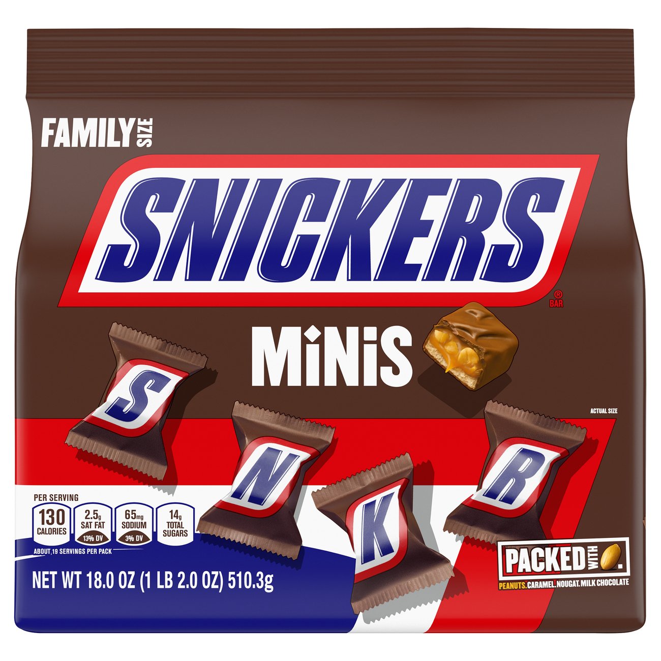 SNICKERS Singles Size Chocolate Candy Bars, 1.86 oz Packed with roasted peanuts, nougat, caramel and milk chocolate, SNICKERS Candy handles your hunger so you can handle things that don't relate to hunger at all. WHERE TO BUY Nutrition Serving Size 1 bar Amount per serving % Daily value Calories 250 Total Fat 12 g 15% Saturated Fat 4.5 g 23% Trans Fat 0 g Cholesterol <5 mg 0% Sodium 125 mg 5% Calories in Snickers Snickers Bar (1.86 oz) and Nutrition Facts Nov 1, 2021 · Snickers Bar (1.86 oz) Nutrition Facts Serving Size 1 bar (1.86 oz) Amount Per Serving Calories 250 % Daily Values* Total Fat 12.00g 15% Saturated Fat 4.500g 23% Trans Fat 0.000g Cholesterol 5mg 2% Sodium 125mg 5% Total Carbohydrate 32.00g 12% Dietary Fiber 1.0g 4% Sugars 28.00g Includes 26.00g Added Sugars 52% Protein 4.00g Vitamin D 0mcg 0%