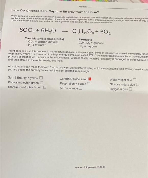 How do chloroplasts capture energy from the sun coloring worksheet answers